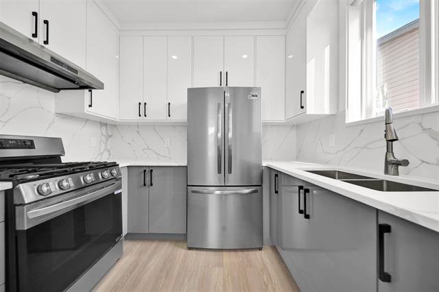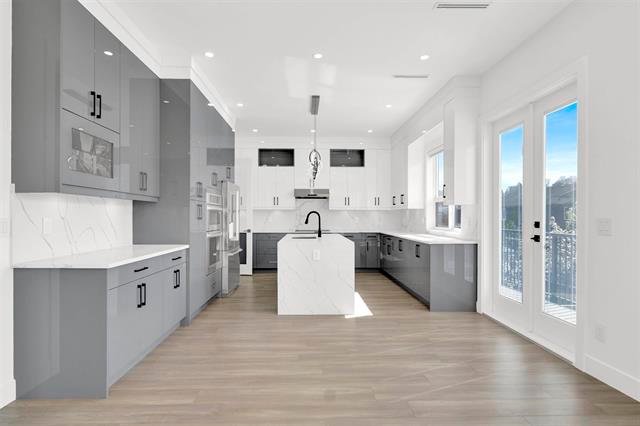 This stunning custom-built new home in North Surrey offers 9 bedrooms and 7 bathrooms—perfect for a growing family. Featuring modern architecture, it’s ideal for entertaining and family gatherings. The main level includes a large bedroom with en-suite, spacious living, family, and dining areas, a chef-inspired kitchen with quartz countertops, a work kitchen, a powder room, and a sundeck perfect for get-togethers. Upstairs offers 4 generously sized bedrooms, 3 bathrooms, and a spa-like ensuite in the primary suite. Located close to parks, transit, and all amenities, with plenty of street parking on the east side.